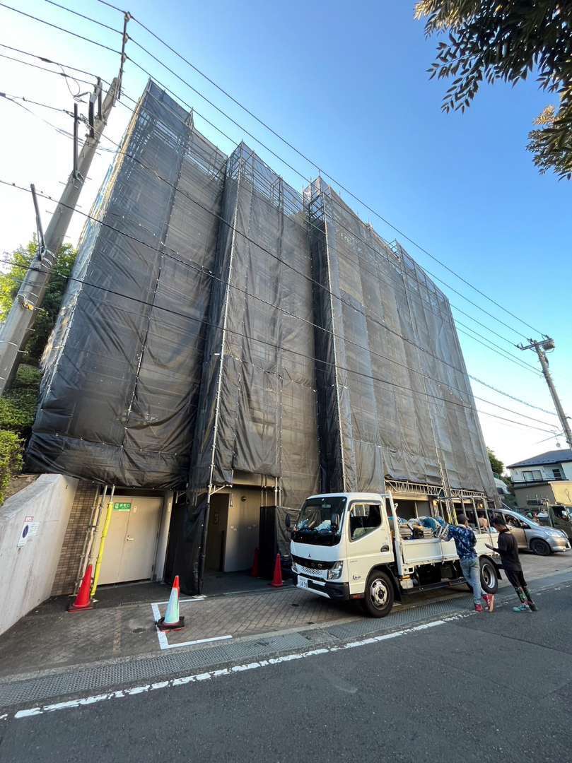 東京都大田区にあるK'sアパートにて、外装改修工事に向けた足場の設置工事を行いました。 今回の工事では、外壁塗装や屋根の改修、防水処理な…