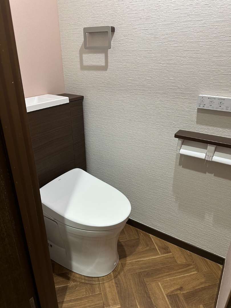 また、ペーパーホルダーやタオルリングも新しいものに交換し、日常の使いやすさにも配慮しました。リフォーム後は、S様から「トイレに入るたび気持ちが明るくなる」とのお声もいただいております。