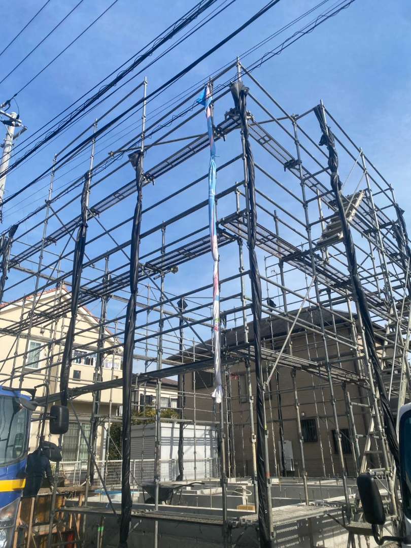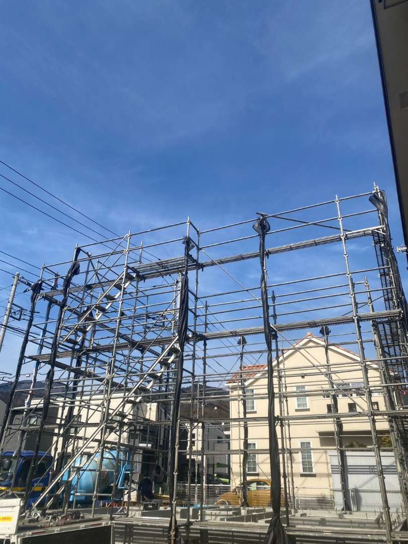 戸建て 新築先行足場 ■足場仮設工事 N様邸 新築工事に伴う先行足場設置|神奈川県秦野市 神奈川県秦野市にて、新築住宅の建築に伴う先行足場の設置工事を行いました。今回は木造戸建て住宅の上棟に先駆けて、安全かつ効率的な建方作業を可能とするための先行足場を設置。重機や資材の搬入・作業導線を十分に確保し、施工チーム全体がスムーズに動けるよう配慮しました。また、近隣住宅との距離が近い現場環境でもあるため、養生・安全対策を徹底し、安全第一での施工を実施しております。 場所 神奈川県秦野市 前の施工事例 マンション・アパート Bアパート 外装改修に伴う足場設置工事|神奈川県藤沢市 次の施工事例 戸建て S様邸 新築工事に伴う先行足場設置|神奈川県横浜市港南区
