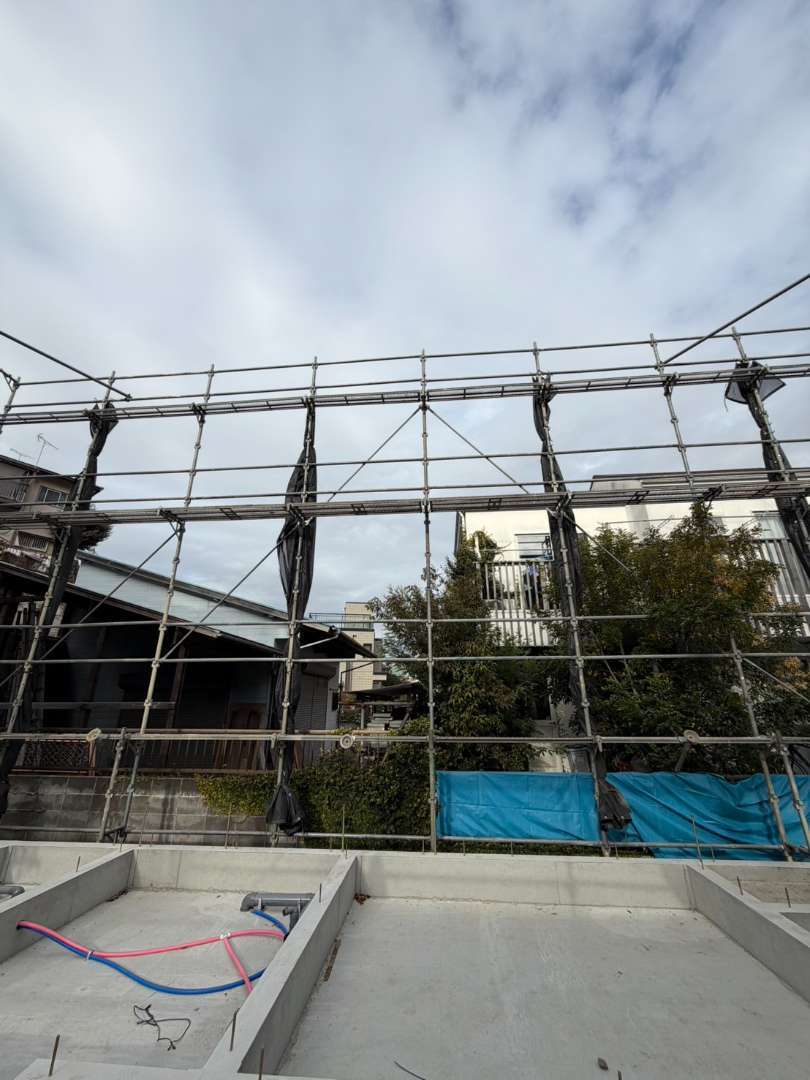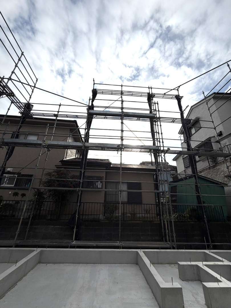 戸建て 新築先行足場 ■足場仮設工事 S様邸 新築工事に伴う先行足場設置|神奈川県横浜市港南区 横浜市港南区にて、S様邸新築工事の開始に先立ち、先行足場の設置工事を行いました。今回の施工では、基礎工事が完了した段階で、安全かつ効率的に上棟作業を行うため、建方前のタイミングで足場を組み上げました。敷地形状に合わせた設計で、狭小スペースや隣接建物への配慮を徹底し、作業性と安全性を兼ね備えた足場環境を実現しています。また、建物の高さや工事の進行に応じた柔軟な足場構成とし、今後の作業が円滑に進むよう計画的に設置を行いました。 場所 神奈川県横浜市港南区 前の施工事例 戸建て N様邸 新築工事に伴う先行足場設置|神奈川県秦野市 次の施工事例 戸建て H様邸 新築工事に伴う先行足場設置|神奈川県秦野市